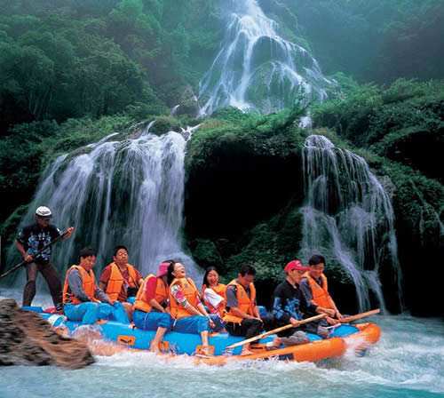 | 全天 | 張家界市區乘車沿途欣賞土家田園風光(32公里)經小溫線至中國旅游首漂—張家界茅巖河漂流起 漂碼頭,乘橡皮舟,漂流茅巖河,同當纖夫樂;與纖夫同唱《茅巖河號子》,體驗纖夫快樂人生,賞索影峽、鴛鴦洲、鬼門關、水洞子瀑布、繞難灘、黃土城、西天取經等景點,觀峽谷秀麗風光,品土苗漁家燒烤,打水仗,留倩影,親身領略“浪遏飛舟”的漂流險趣,約2小時達終點碼頭,BUS返市區(25分鐘)。 |